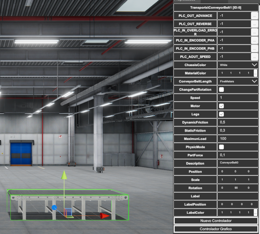 En la siguiente imagen se muestra la correa transportadora y al lado sus propiedades